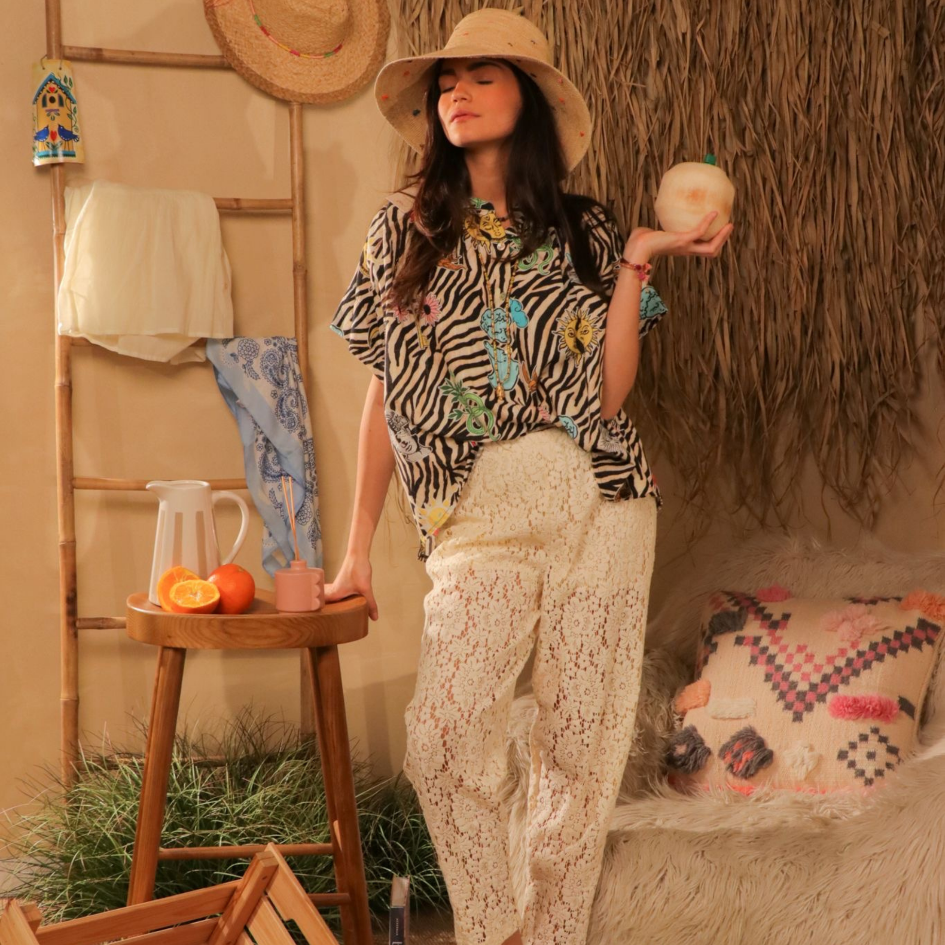 Confectionnée dans un tissu léger et confortable, elle se porte facilement au quotidien ou en vacances pour un look décontracté et moderne.