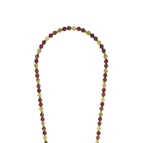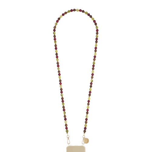 Chaine longue Harper 120 cm – Perles bordeaux, marron et kaki avec mousquetons dorés