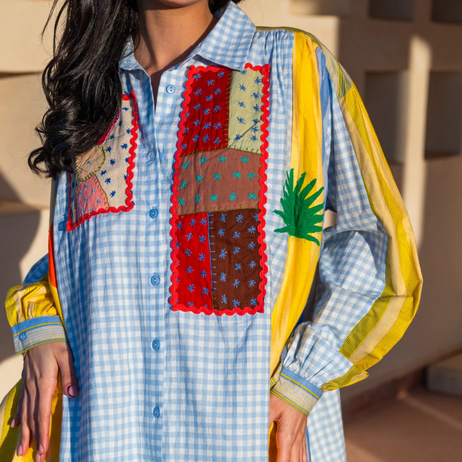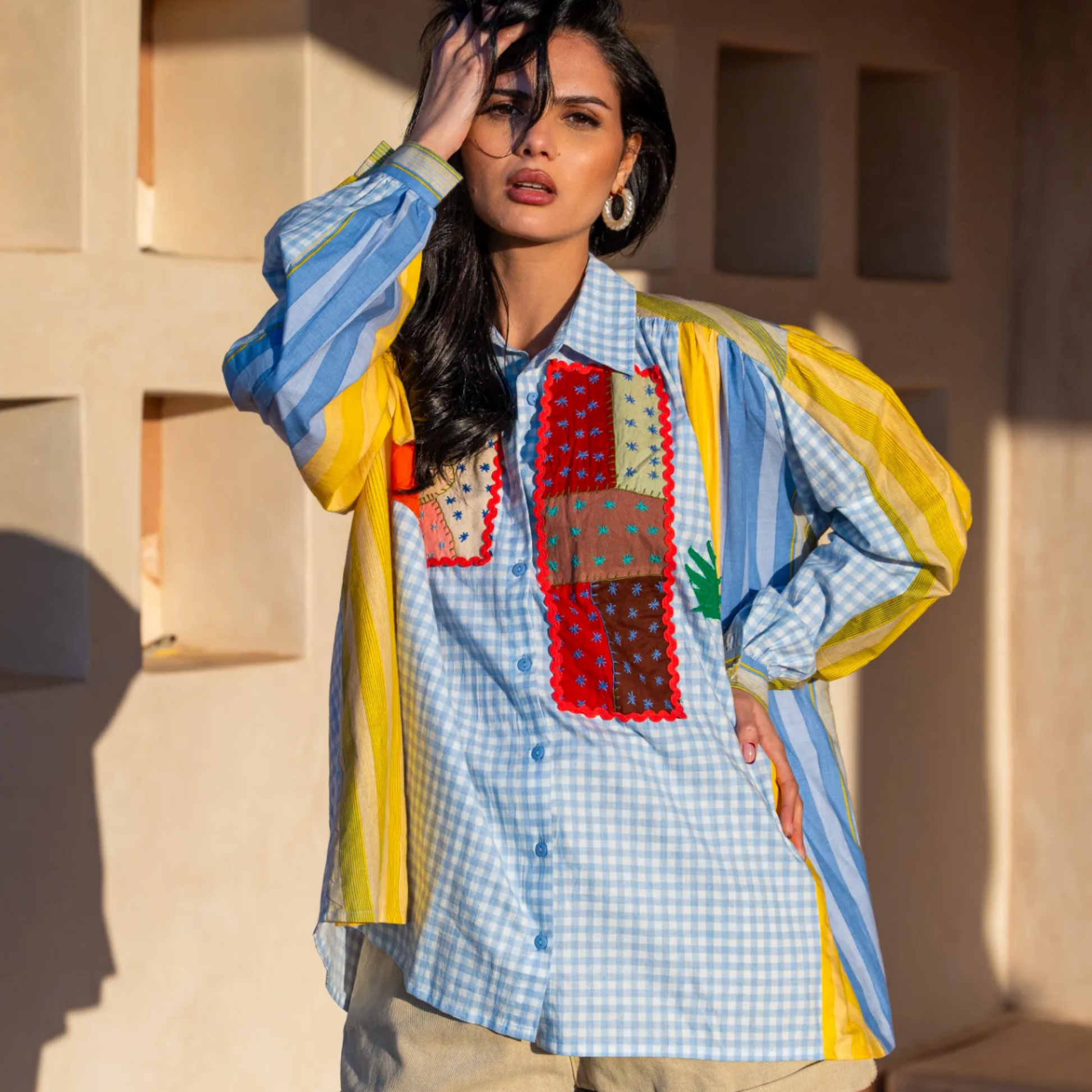 La chemise patchwork allie style original et confort. Confectionnée en 100% coton, sa coupe fluide et légère assure un porté agréable tout au long de la journée.
