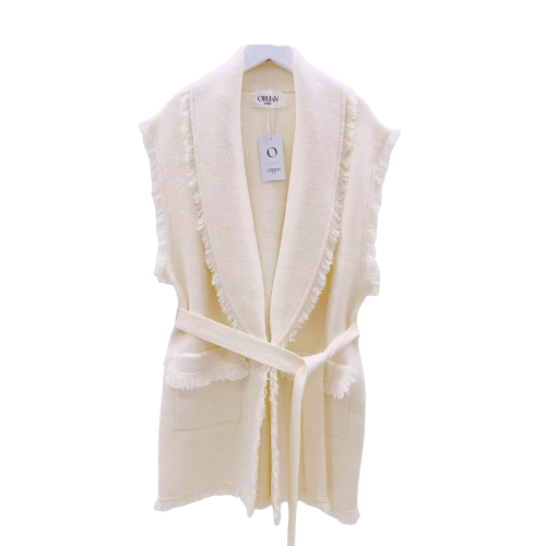 Un essentiel tendance et polyvalent qui apporte une touche bohème chic à toutes vos tenues. Ce gilet sans manches à finitions frangées se porte aussi bien ouvert pour un style décontracté que ceinturé pour une silhouette plus structurée.