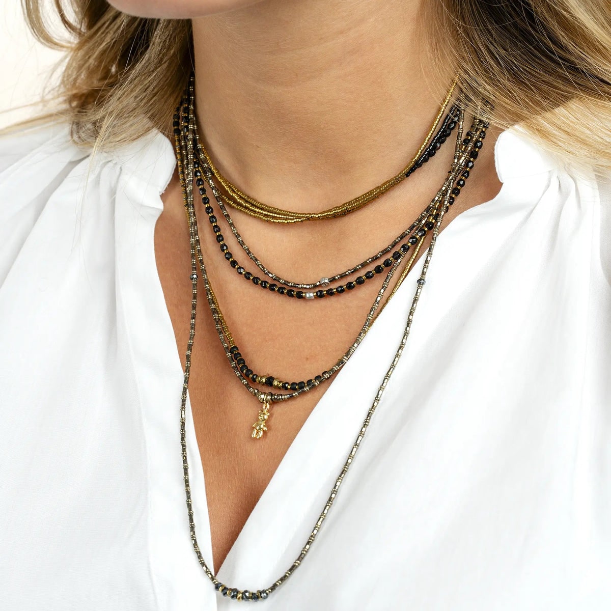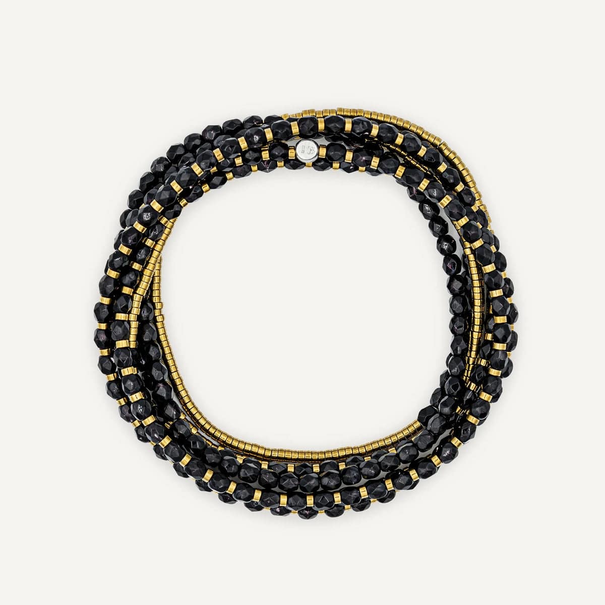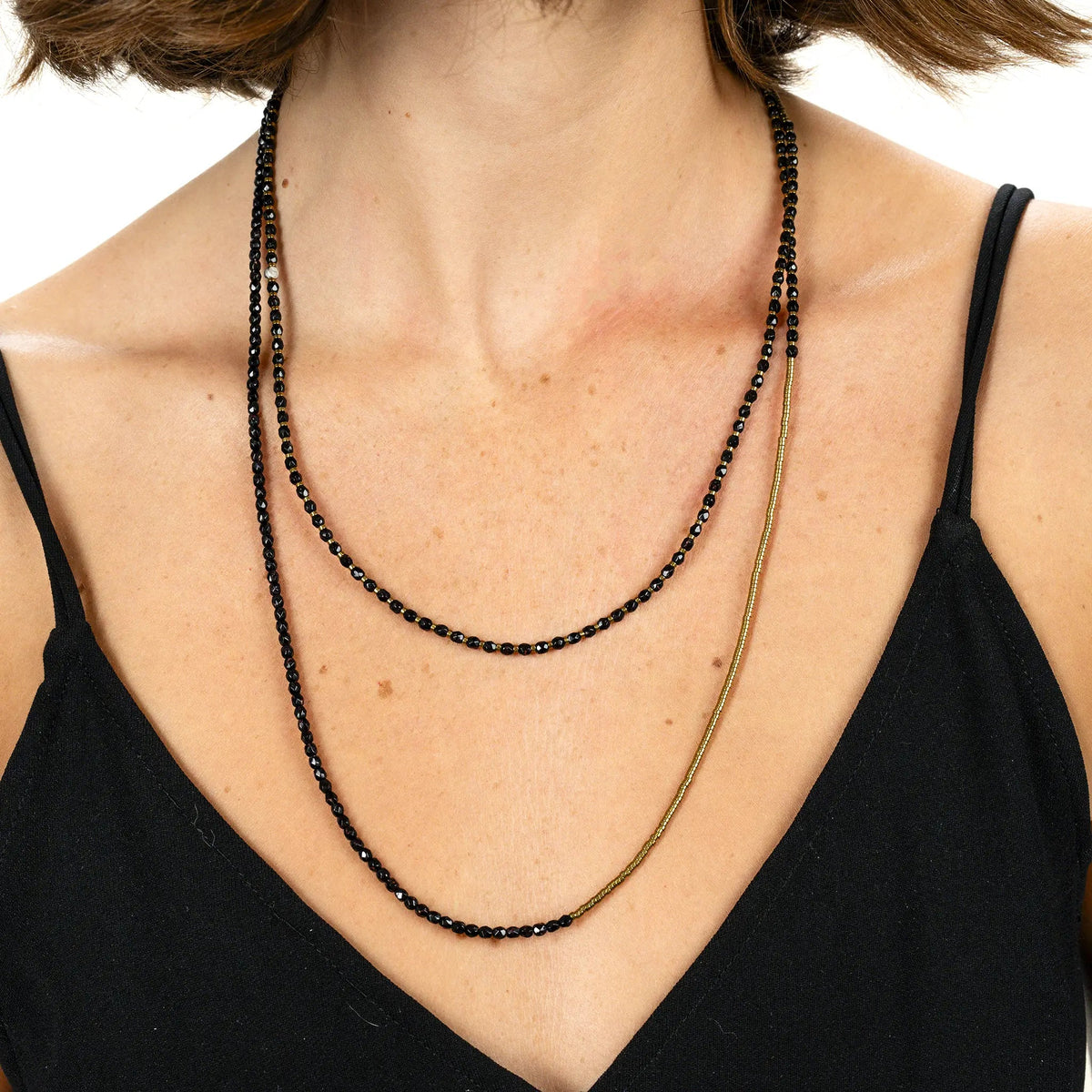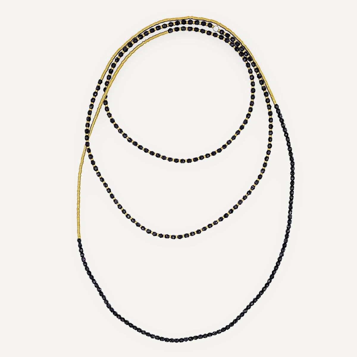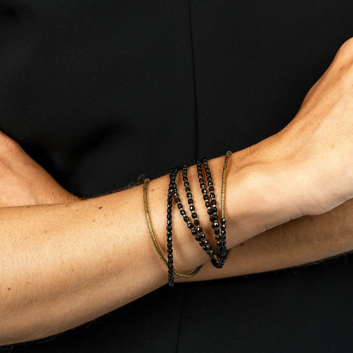 Monté sur un fil à mémoire de forme, le MIDNIGHT se porte en long collier-sautoir de 120 cm ou en bracelet 7 tours, offrant une polyvalence unique et un style modulable selon vos envies. Léger et confortable, il s’adapte aussi bien aux tenues quotidiennes qu’aux occasions plus habillées.