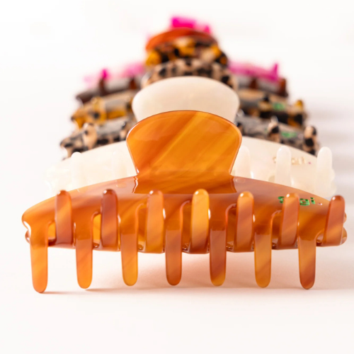 La pince banana COCO offre un maintien inégalé pour tous types et longueurs de cheveux grâce à sa forme ergonomique. Fabriquée en acétate de cellulose de haute qualité, elle allie robustesse et élégance.