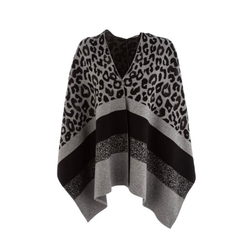 Apportez une touche audacieuse et chic à vos tenues avec ce poncho léopard, disponible en gris ou marron, subtilement rehaussé de strass noirs pour un effet scintillant et raffiné. Sa coupe ample et fluide en fait une pièce confortable et facile à porter, parfaite pour un style décontracté ou élégant selon vos envies.