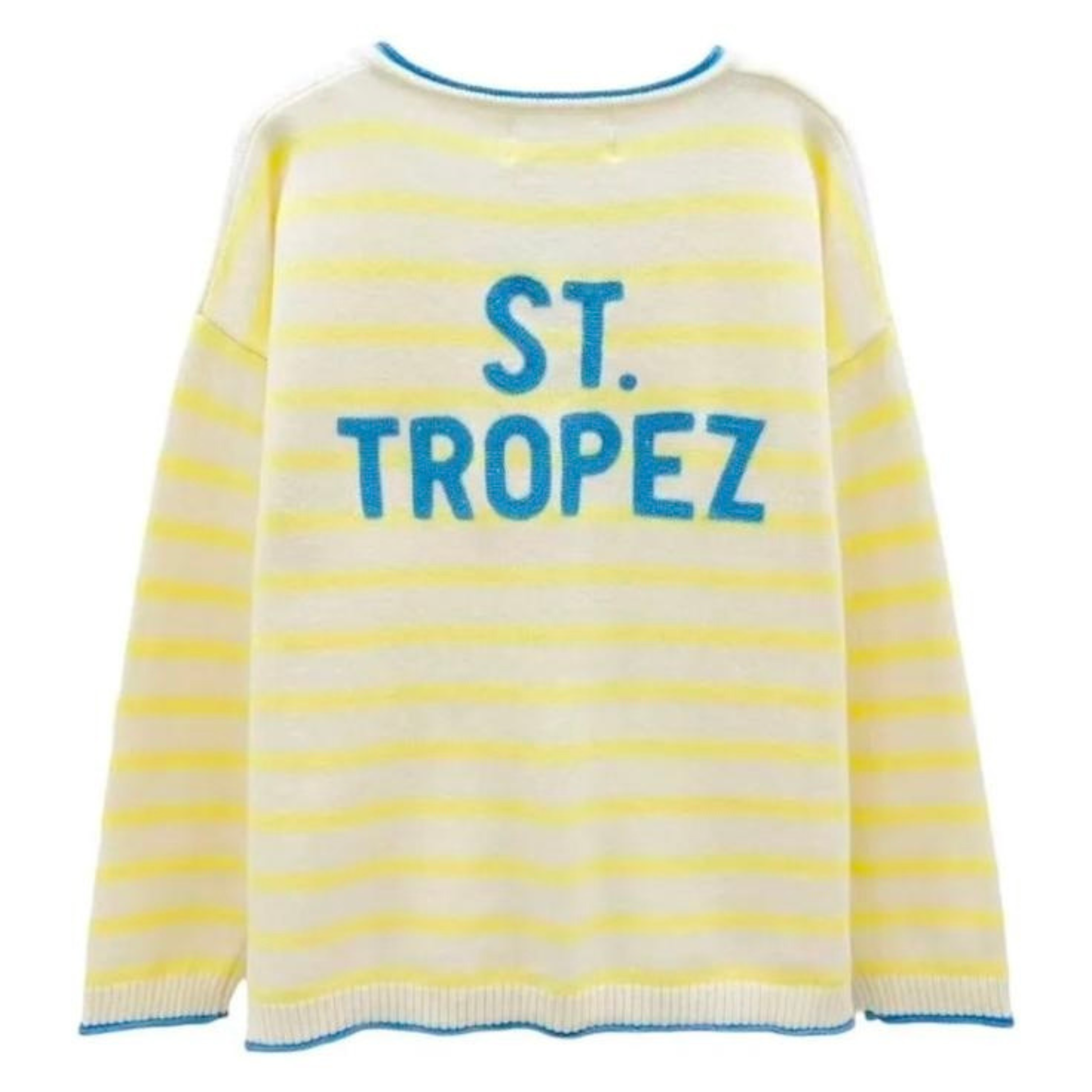 Sa coupe fluide à col V met en valeur la silhouette de manière délicate, tandis que les rayures apportent une touche graphique et moderne. Le détail de l'écriture « Saint-Tropez » dans le dos confère une originalité subtile et chic à cette pièce décontractée et raffinée.