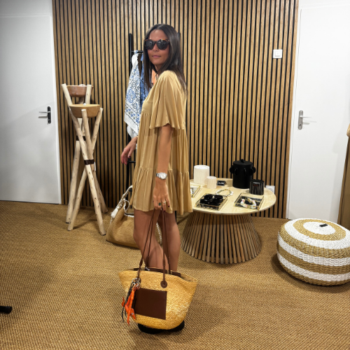 Apportez une touche de fraîcheur et d'élégance à votre garde-robe avec cette robe col V ornée de détails en coquillage. Sa coupe flatteuse et son col en V mettent en valeur la silhouette, tandis que les coquillages délicatement placés ajoutent une note estivale et exotique. Parfaite pour les journées ensoleillées ou les soirées d'été, cette robe allie style et confort, vous offrant un look bohème-chic. À porter avec des sandales pour un look décontracté ou des accessoires dorés pour une touche plus sophistiquée.