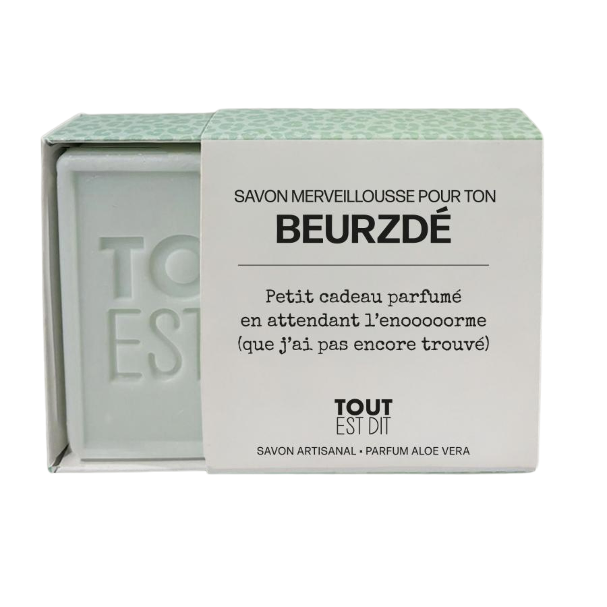 Offrez un petit moment de douceur à votre moitié avec le savon artisanal Merveillousse pour ton Beurzdé signé Tout est Dit. Parfumé et doux pour la peau, il se glisse facilement dans une trousse de toilette ou se pose sur le lavabo pour un geste quotidien rempli d’humour et d’attention.