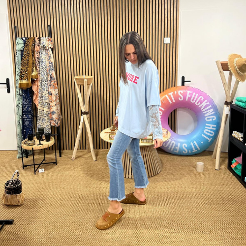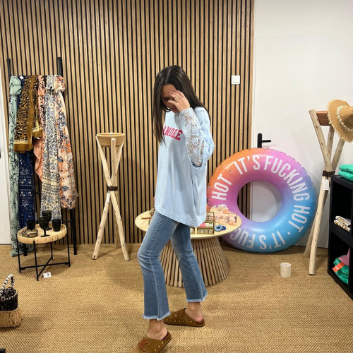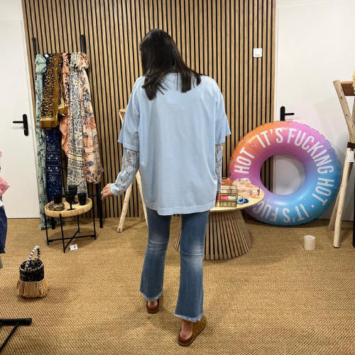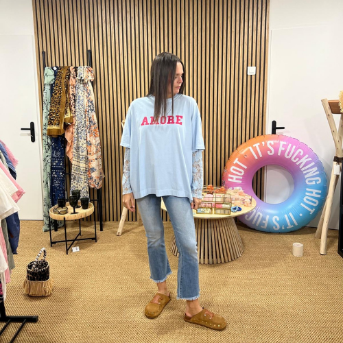 Le Tee- shirt Amore revisite le basique oversize avec une touche de poésie. Sa coupe ample assure un tombé fluide et confortable, tandis que ses manches en dentelle délicate apportent une note féminine et sophistiquée.